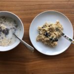 Mine and hers... sticky blueberry, chia porridge for Ava and cold super bowl (oats, blueberries and chia) for mummy! A quick under 5min breakfast. I started offering this to Ava from 6mo. and she still loves it! Easy to pick up for babyledweaners and not that messy for mum/dad to clean up as its gluggy!