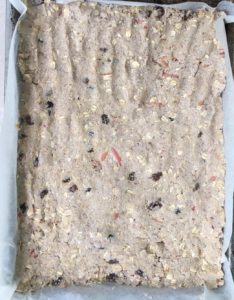 - Step 5 Once ingredients are all mixed in, using your hands scrap the mixture out and mould it into the tray (the mixture should be a thick heavy texture)