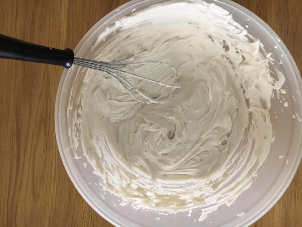 - Step 3 • Make the icing: spoon out the ‘top of’ the coconut milk cans (not the liquid only the condensed milk that has been set), place into a bowl, add vanilla essence and whisk until icing is nice, fluffy and forms peaks. Now place into the fridge to keep cold