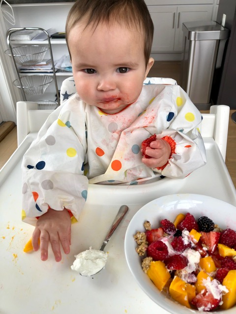 Cosmo is 8 months and loves your breakfast loaf and bananas &date muffins. His total favourite right now though is a big juicy strawberry! I love how we can all eat the same food and we get so many questions when people see him tucking into proper food when we are out.