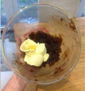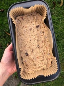 - Step 4 Once dates have softened, drain water and then in a large bowl mash all dates on the side of the bowl with a fork until a paste like consistency. Once date paste has cooled, add non-dairy butter and mix (cream it) it with a fork. Add in vanilla extract, non-dairy milk, flaxseed meal (thats setting in the fridge) and ginger powder. Combine. Add flour and fold through until fully combined. Pour out mixture into lined loaf tin and bake for approx 20 to 25 minutes on 180 degrees celcius.