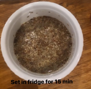 - Step 2 Pour flaxseed meal/ground into a small bowl and add 3 tablespoons of water. Mix until combined, then place into the fridge to set for 15 minutes (this is called making flax-egg, an alternative to using egg).