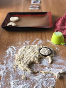 - Step 5 Pour out 55 grams of self-raising flour onto a bench work top, gently roll knead out dough with your hands. Using a scone cutter circle, cut out approx 10 scones, approx 7cm thick. Place scones on a lined baking tray and place into oven for 15 minutes. Store in a airtight container in the fridge for up to 5 days or freezer for up to 3 months.
