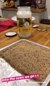 - Step 4 Prepare a baking tray by rubbing coconut oil on the base and sides, now push the ingredients down evenly onto tray and into the corners.