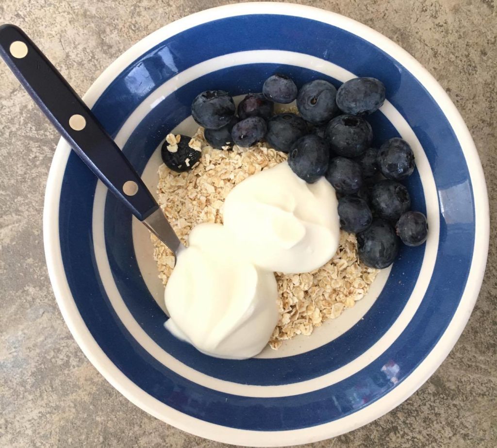 - 55 grams (half cup) of raw quick oats or whole oats