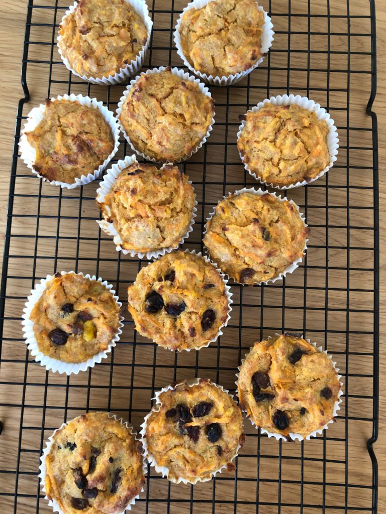 - Step 4 Spoon out the mixture into each paper case or a greased silicone muffin tray, smooth out the top of each muffin mixture, to prevent any grated carrot from burning. (*option: If adding sultanas to half the muffins, spoon out half the mixture into cases then mix through half a cup of sultanas to the other half of the mixture and spoon out the rest into the cases.) Bake for approx 20-25 minutes until centre is cooked. Leave to cool on a wired rack. Store in the fridge for up to 4 days or freeze up to 3 months.